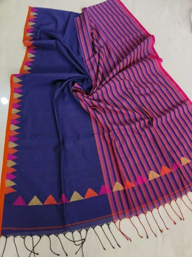 A half-and-half pattern in traditional Bengal Cotton saree. A comfortable drape – sure to be your pick for a casual outing, simple functions, work and college wear.